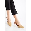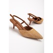 Kadın Kısa Topuklu Ayakkabı Taba Hasır Malzeme İnce Topuk Yan Direkli-3795 Taba