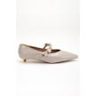 Kadın Kısa Topuklu Aykkabı Bej Rugan Baretli Minik Ökçe-4324 Bej