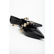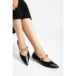 Kadın Kısa Topuklu Aykkabı Siyah Rugan Baretli Minik Ökçe-4322 Siyah