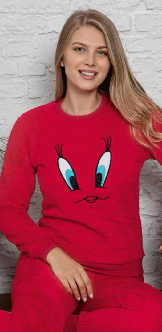 Kadın Kışlık Peluş Pijama Takımı Tweety Takım Tampap 8170- 1005 Kırmızı