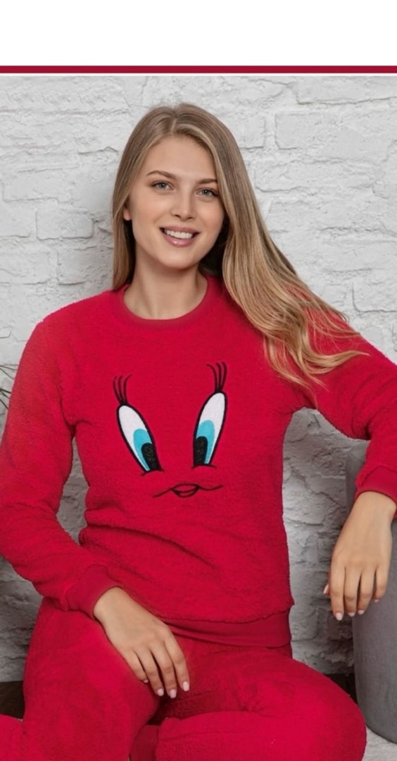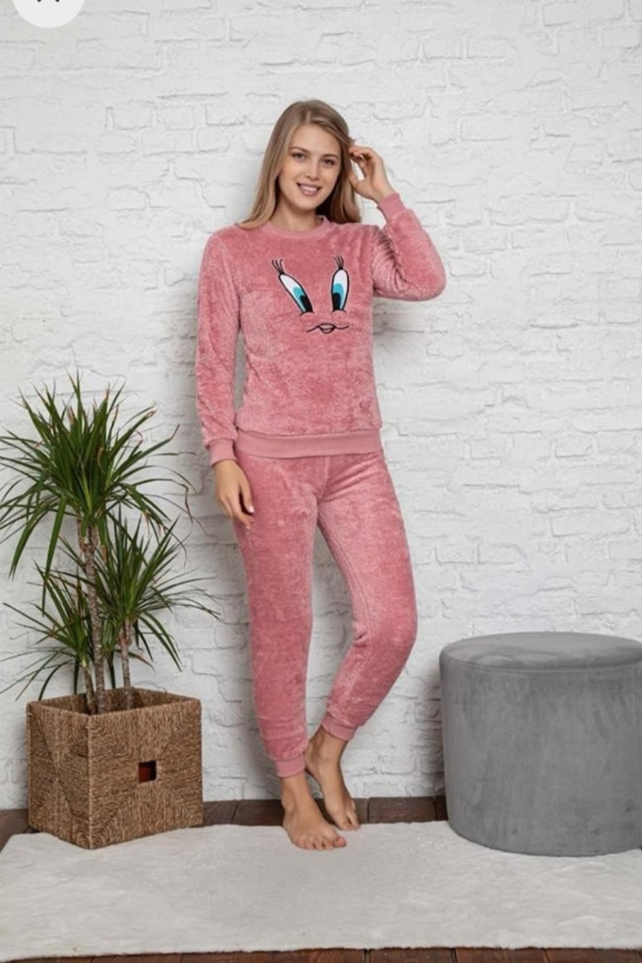 Kadın Kışlık Peluş Pijama Takımı Tweety Takım Tampap 8170- 1006 Pembe