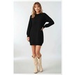 Kadın Kolları Uzun Kendinden Dokulu Bisiklet Yaka Tunik Boy Şık Kışlık Triko Büyük Beden Kazak Siyah