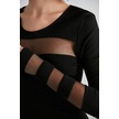 Kadın Kolları Ve Yakası Tasarım Tül Detaylı Uzun Kol Kışlık Şık Elbise Siyah