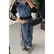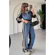 Kadın Kot Garnili Siyah Şeritli Palazzo Alt Üst Takım Çok Renkli
