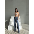 Kadın Koyu Mavi Renk Loose Fit Önü Starlight Parlak Taşlı Tasarım Denim Mavi