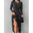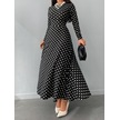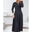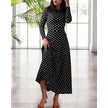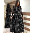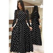 Kadın Krep Kumaş Uzun Kollu Tam Boy Puantiyeli Elbise 132 Cm Siyah