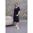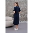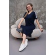 Kadın Kristal Kumaş Şerit Ve Yırtmaç Detaylı V Yaka Midi Boy Elbise Lacivert