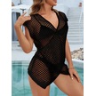 Kadın Kruvaze Detay Ajurlu Triko Pareo Siyah