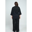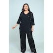 Kadın Kruvaze Polo Yaka Tek Taraf Pullu Krep Şifon Bluz Beli Lastikli Astarlı Bol Paça Pulpayet Pantolon Büyük Beden 2'li Takım-41642 Siyah