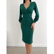 Kadın Kruvaze Yaka Balon Kol Midi Boy Elbise Bediva 001