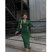Kadın Kruvaze Yaka Balon Kol Simli Krep Kumaş Midi Boy Elbise Yeşil