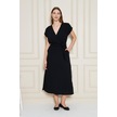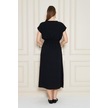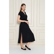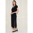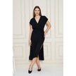 Kadın Kruvaze Yaka Cepli Derin Yırtmaçlı Beli Lastikli Aerobin Günlük Yazlık Elbise 3764341 Siyah