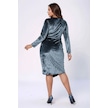 Kadın Kruvaze Yaka Esnek Şık Uzun Kol Büyük Beden Curve Kadife Abiye Gece Elbisesi Mavi