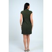 Kadın Kruvaze Yaka Toka Detaylı Eteği Pileli Likralı Krep Elbise-40381 Haki