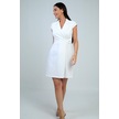 Kadın Kruvaze Yaka Toka Detaylı Eteği Pileli Likralı Krep Elbise-41677 Ekru