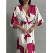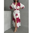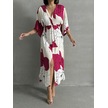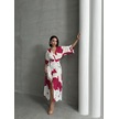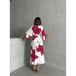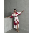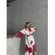 Kadın Kruvaze Yaka Yırtmaçlı Uzun Yazlık Elbise Fuşya - Beyaz