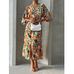 Kadın Kruvaze Yaka Yırtmaçlı Uzun Yazlık Elbise Turuncu - Yeşil