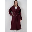 Kadın Kuşaklı Kaşe Kaban 9161 - Bordo Bordo