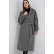 Kadın Kuşaklı Kaşe Kaban 9161 - Gri Gri