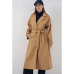 Kadın Kuşaklı Kaşe Kaban 9161 - Hardal Hardal