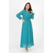 Kadın Kuşaklı Uzun Şifon Elbise Dpkts003 Petrol Mavisi