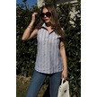 Kadın Laci Çizgili, Dokulu Yazlık Kumaş, Yarım Patlı, Sıfır Kollu Bluz Lacivert