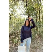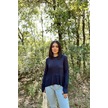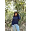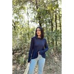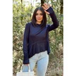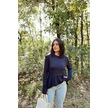 Kadın Laci Elleri Eldiven Detaylı, Asimetrik Kesim, Bisiklet Yaka, Eteği Pliseli, Salaş Spor Bluz Lacivert