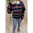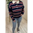 Kadın Lacivert - Bordo Polo Yaka Çizgili Oversize Triko Kazak Lacivert