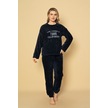 Kadın Lacivert Renk Peluş Pijama Takımı GÜL KURUSU