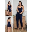 Kadın Lacivert Renkli Dantel Detaylı Şortlu Ve Taytlı Pijama Takımı 3'lü Set 75019 Lacivert