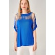 Kadın Lazer Kesim Saks Mavisi Bluz-Saks