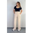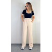 Kadın Likralı Cırt Kapama Lacivert Geniş Paçalı Rahat Palazzo Pantolon Bej