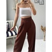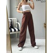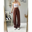 Kadın Likralı Cırt Kapama Lacivert Geniş Paçalı Rahat Palazzo Pantolon Kahverengi