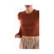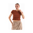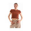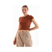 Kadın Likralı Kısa Kol Crop Bluz Kahve