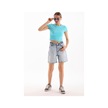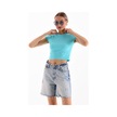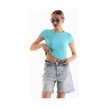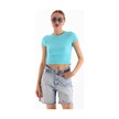 Kadın Likralı Kısa Kol Crop Bluz Turkuaz