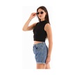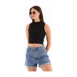 Kadın Likralı Kolsuz Crop Bluz Siyah