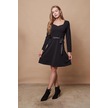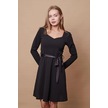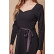 Kadın Likralı Krep Kumaş Kalp Yakalı Uzun Kol Eteği Kiloş Elbise-siyah Siyah