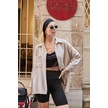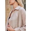 Kadın Likrasız Keten Kumaş Yakalı Cepli Düşük Omuzlu Salaş Oversize Tunik Gömlek-bej Bej