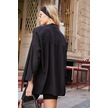 Kadın Likrasız Keten Kumaş Yakalı Cepli Düşük Omuzlu Salaş Oversize Tunik Gömlek-siyah Siyah