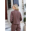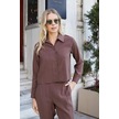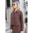 Kadın Likrasız Modal Kumaş Uzun Kol Hafif Kısa Gömlek-kahve Kahve