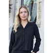 Kadın Likrasız Modal Kumaş Uzun Kol Hafif Kısa Gömlek-siyah Siyah
