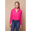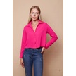 Kadın Likrasız Şık Kumaş Yakalı Uzun Kol Kısa Gömlek-Fujya Fujya