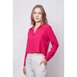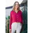 Kadın Likrasız Şık Kumaş Yakalı Uzun Kol Kısa Gömlek-vişne Vişne