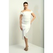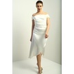 Kadın Madonna Yaka Drapeli Asimetrik Saten Kısa Elbise Ekru