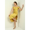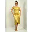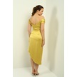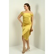Kadın Madonna Yaka Drapeli Asimetrik Saten Kısa Elbise Sarı