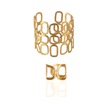 Kadın Mat Altın Kaplama Dikdörtgen Formlu Tasarım Bileklik & Yüzük Seti Altın