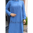 Kadın Mavi Aerobin Uzun Kapşonlu İkili Takım T0219 Mavi