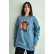 Kadın Mavi Aslan Baskılı Oversize Bisiklet Yaka Sweatshirt Mavi