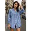 Kadın Mavi Beyaz Oversize Ekoseli Gömlek Over Fit Relaxed Gömlek Çok Renkli