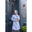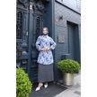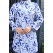 Kadın Mavi Çiçek Desenli Pamuk Dokuma Kumaş Tunik Gömlek Etekli Takım Tk1415 Mavi